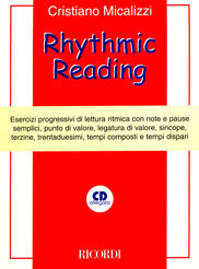 RHYTHMIC READING con CD BMG RICORDI (MLR 612) E' una raccolta di esercizi progressivi di Solfeggio Ritmico con Note e Pause semplici, Punto di Valore, Legatura di Valore, Sincope, Terzine, Trentaduesimi, Tempi composti e Tempi dispari.